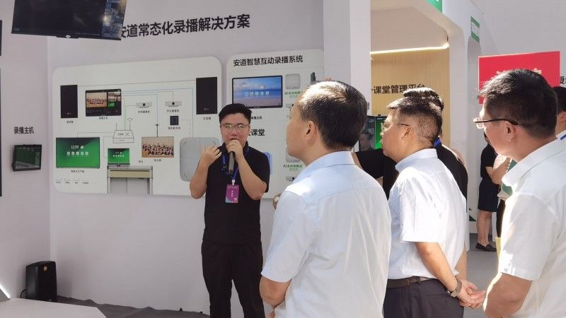 安道教育在展会现场真实还原了高校实际教学环境,针对不同教学需求定制的智慧教室场景,包括研讨课堂、常态化录播课堂等,同时还展示了幼教解决方案、信创成果展示等多种解决方案。场景及方案的展示不仅体现了安道教育对教育现代化的深刻理解,也彰显了安道教育在智慧教育领域的专业实力。